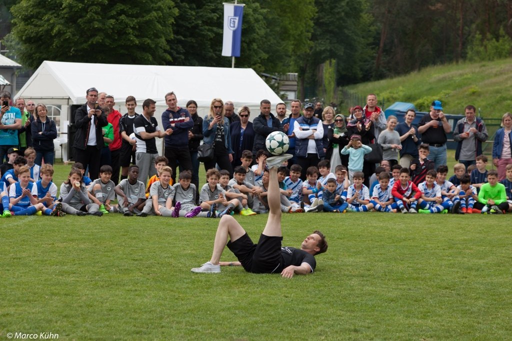 Den Platzierungsspielen ging natürlich eine spannende Vorrunde voraus, an deren Ende eine spektakuläre Halbzeitshow mit dem besten deutschen Fußball-Freestyler Kevin Buchert stand. Was der Mann am Ball fabrizierte, ließ die versammelten Kids mit offenen Mündern dasitzen. Na ja, und auch wir Erwachsenen staunten nicht allzu schlecht.